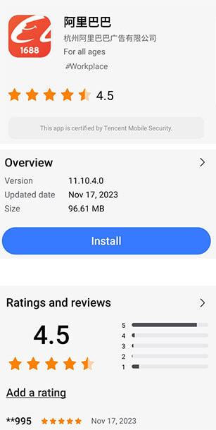 About the 1688 APP, it just has the Chinese version, and canāt be translated into the English version. So it appears nonsense to you, although you can download it from the app stores.